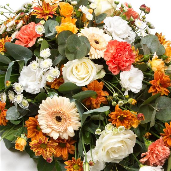 A classic 2ft long (61cm), single ended mixed spray in peaches, rusts, whites and creams.